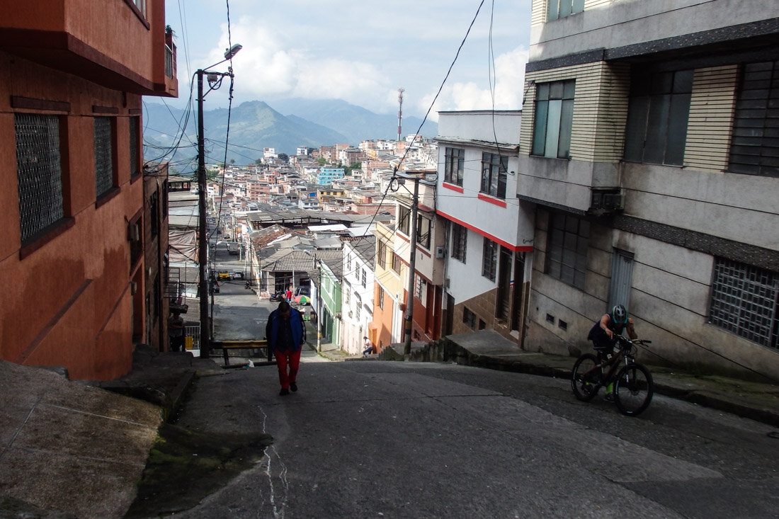 У Андрея не работал передний тормоз, и это было незаметно, когда мы ехали вверх, но стало проблемой, когда мы ехали 25 км вниз по грунтовке, да, 25 км! спуска такого качества как у нас в Крымских горах, и на одном заднем тормозе очень сложно удержать велосипед. К концу спуска колодки стерлись до металла и дальше. В Манисалисе первым делом заехали в велосипедный магазин купить новый тормоз, потому что старый уже не чинится. И девушка-продавец рассказала, что на велике вполне возможно подняться до Лагуны отун из Манисалеса, и потом по другой дороге спуститься в Santa Rosa de Cabal. На лагуну Отун гид не нужен, это бред, что нам сказали на входе в парк, причем я эту версию про гида слышала уже неоднократно и от других людей. На Laguna Otun гид не нужен!!!!  Но за вход в парк придется заплатить по 28000 песо, это около 10 баксов для иностранцев, билет действует много дней. Маршрут из Манисалеса на озеро и обратно в долину около 100 км  с набором высоты 3000 метров на подъем 50 км. Девушка сказала, что она этот маршрут ездила за один день, но нам с грузом потребуется 2, в итоге нам потребовалось 5 дней, чтобы все проехать и сходить в поход к вулкану Santa Isabel