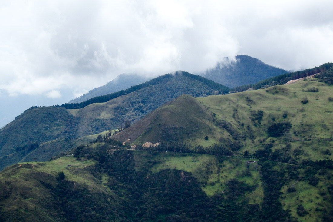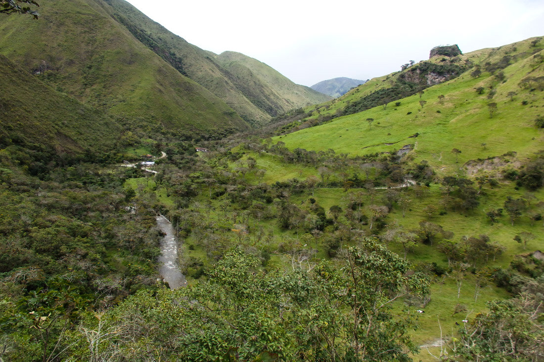 Дорога от Genova До Barragan (3000 м) очень живописная и пустая. После Genova нужно подняться на перевал 2400, потом спуститься до 2000, а потом подниматься и подниматься еще до 3500, довольно долго. Всего дорога между этими селами около 60 километров, вначале очень плохой грунтовки, но главное, что дорога совершенно пустая, машин нет, иногда только мотоцикл проедет, да и финок (ферм) тоже почти нет, тогда как обычно они через каждые несколько километров. Нет ни банановых, ни кофейных плантаций, просто зеленые горы вокруг и глубокие долины. Мне это напомнило район Грузии-Тушетии, где мы ходили пешком в прошлом году. Действительно, дикие горы.