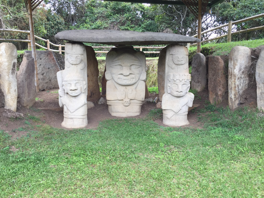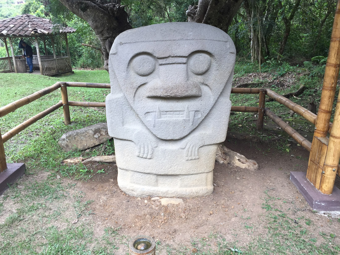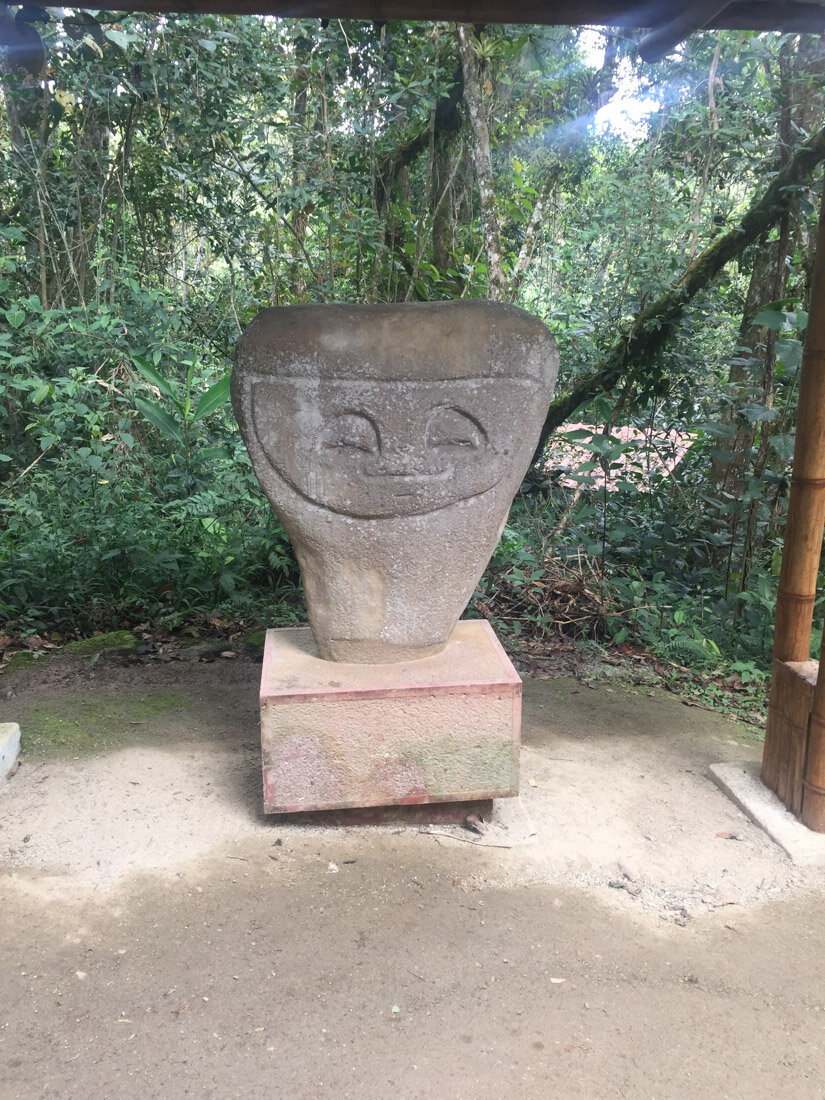 Parque arqueologico de San Augustin состоит из Леса Статуй, где вдоль дорожки стоят скульптуры, найденные  в разных местах. И так называемых Mesitas, столики в переводе- это 3 больших плоских места посреди леса, с остатками захоронений, гробницами, надгробными камнями. Между mesitas просто длинные тропы в лесу. Нам потребовалось 3 часа, чтобы все обойти и посмотреть. Мне понравилось.