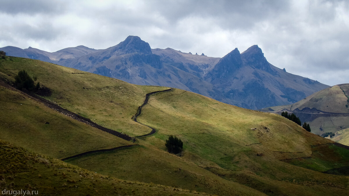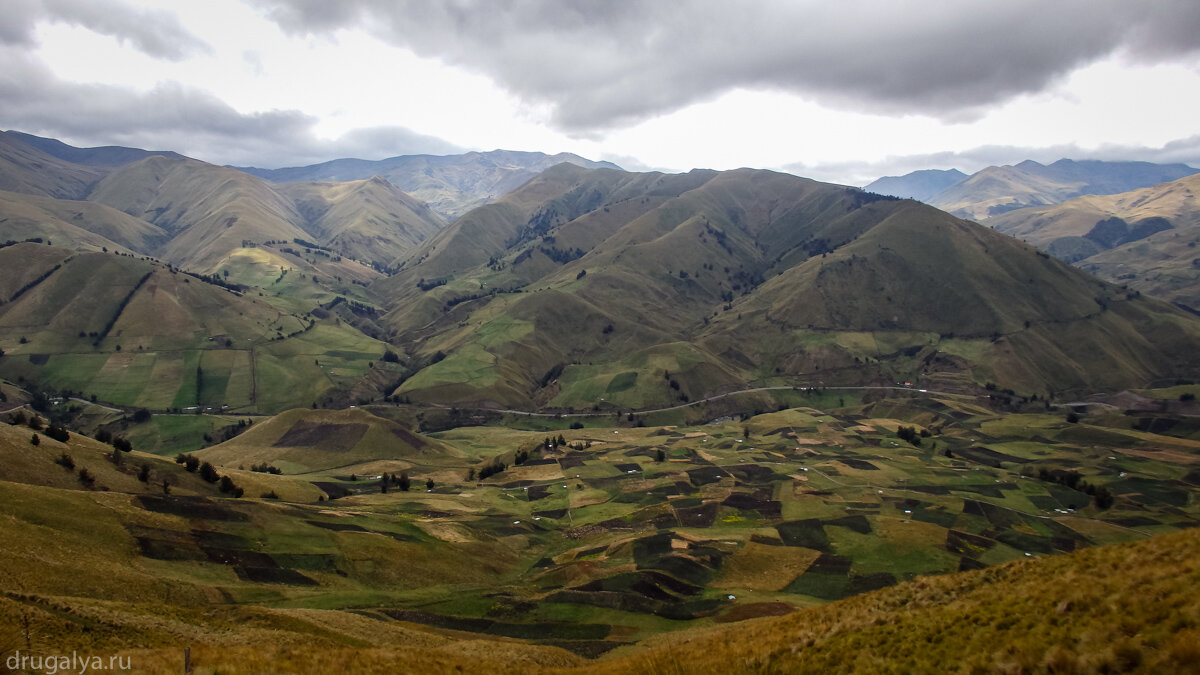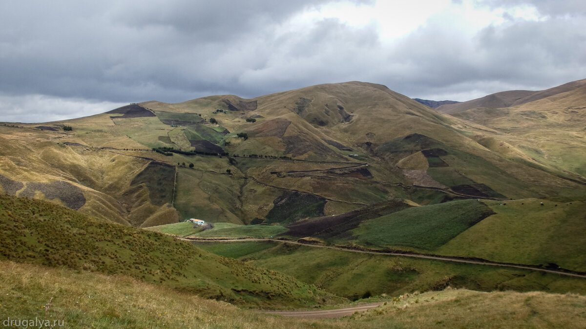 После Chimborazo проезжаем мелкие городки, поднимаемся, спускаемся, все вокруг выглядит очень заброшенным и как будто нежилым. Все это в купе с пасмурной погодой выглядит удручающе