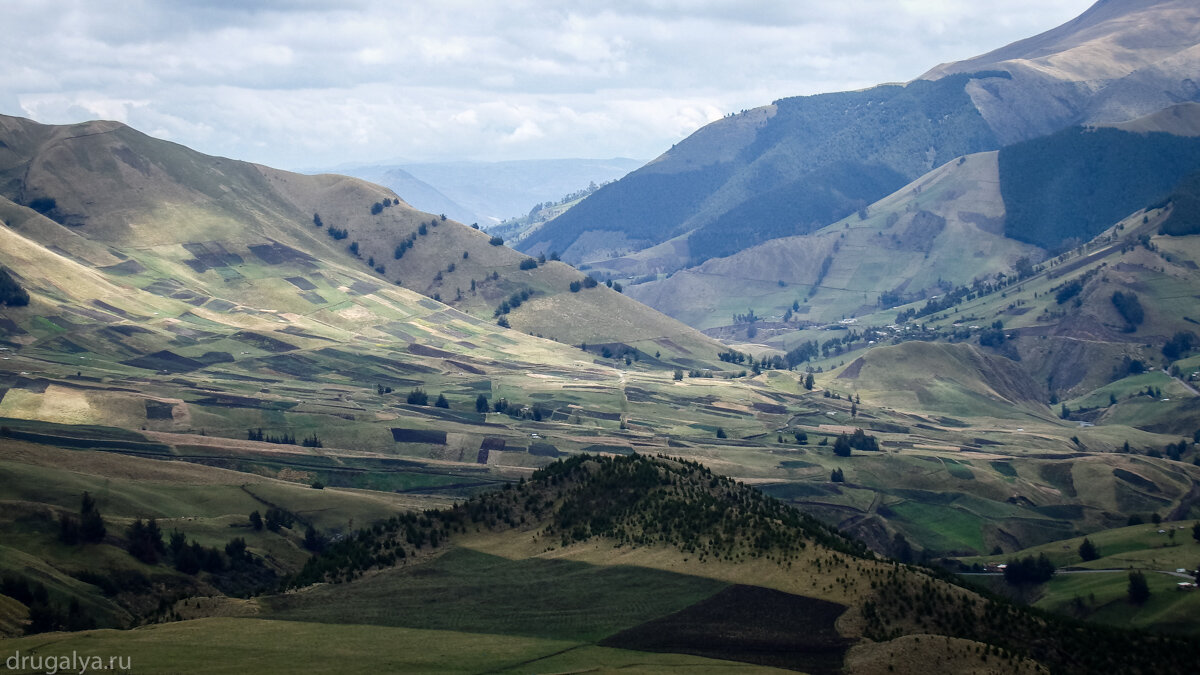 Сначала въехали в самый высокогорный район Эквадора — подножие вулкана Chimborazo. Правда нам не очень повезло с погодой, вулкан был закрыт облаками, и все следующие дни было облачно и не видно горы.