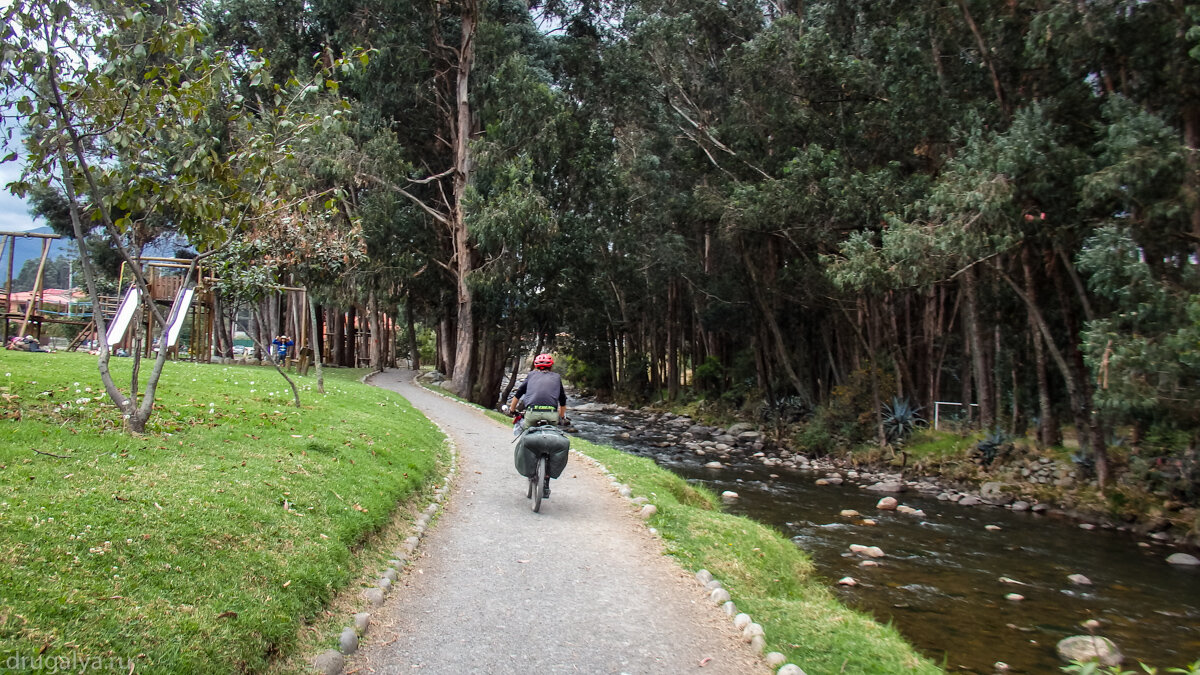 Наконец, въехали в Куэнку и 15 км ехали вдоль реки, там бесконечный парк, похоже немного на Симферопольский Салгир, только вместо тополей и платанов — эвкалипты. В Куэнке остановились по warmshowers —  в западной части города на горе, в гаражных условиях.
