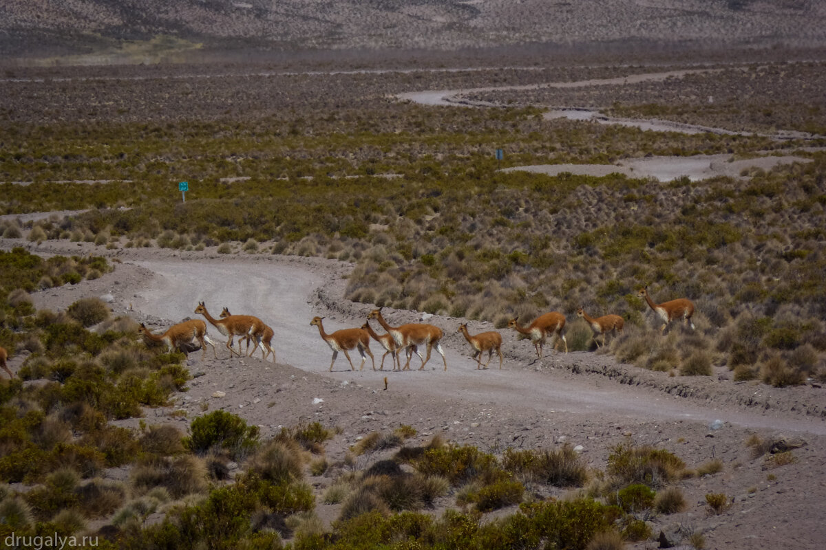 Дорога огибает пустыню и начинает плавно карабкаться на перевал 4700. Ох не люблю я такие плавные и длинные подъемы — едешь с такой же скоростью, как и в крутой подъем, только намного дольше. Еще и встречный ветер, правда, не такой сильный, как вчера. Под перевалом нас нагнали 2 джипа, похоже с туристами (первые машины за 2 дня), водитель поинтересовался, знаем ли мы, что перевал очень высокий и как мы себя чувствуем. Да что тут, нам такая высота уже ни по чем после Перу.