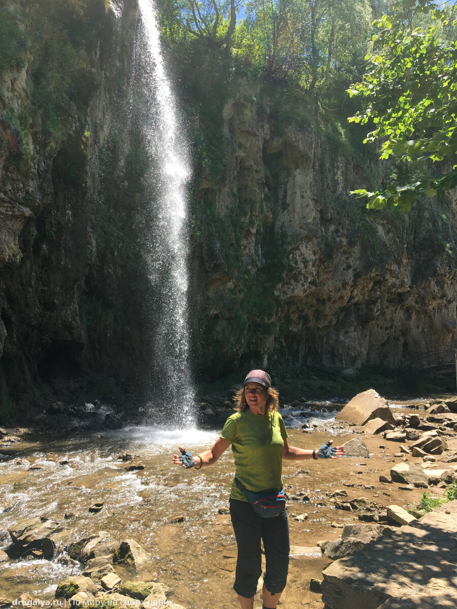 Дорога на Бермамыт начинается от Красного Кургана, но мы решили срезать крюк и избежать трассы, а также разнообразить поход по дорогам некоторыми тропами. Поэтому едем вдоль ручья Аликоновка вверх к знаменитым Медовым водопадам (одна из достопримечательностей Кисловодска, куда водят экскурсии).