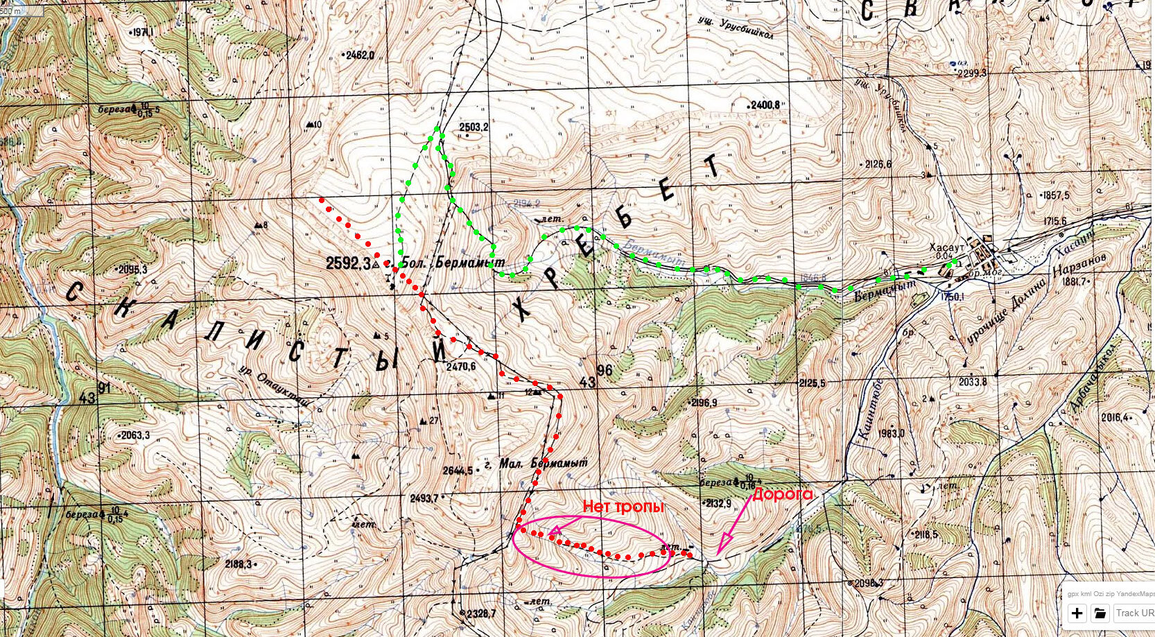 5. Если ехать по столбам, то можно выехать на трассу Кисловодск- Джилы-су намного дальше и избежать лишнего высокого перевала. Мы свернули со столбовой дороги в районе ответвления от нее коричневой грунтовки и оказались без тропы