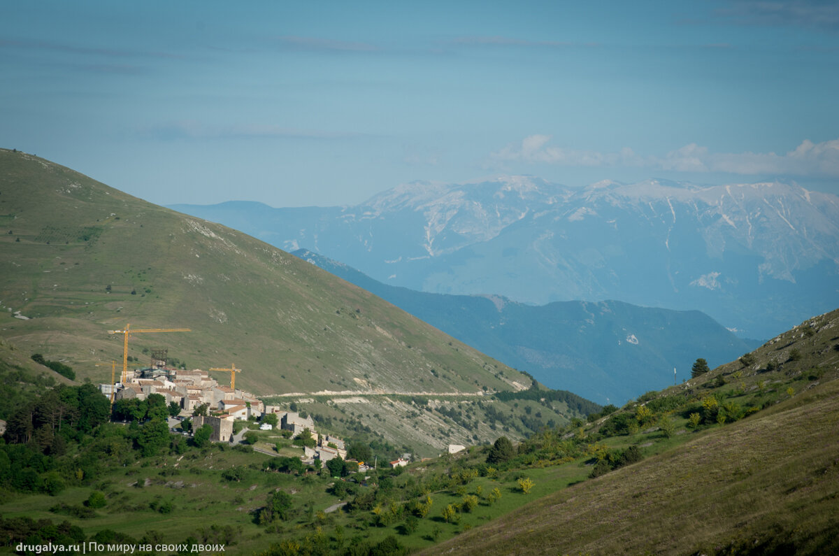 Половина дорог – грунтовые. Маршрут проходит через 3 национальных парка Италии, избегая крупных городов, и вообще каких-либо городов. На пути встречаются очень много средневековых городков-крепостей «на горе», фактически как наша крепость Чембало, только более застроенные. Некоторые городки жилые – в старинных домах живут люди, иногда есть магазины, а в некоторых только теплится жизнь в виде сувенирных лавок и пары-тройки барчиков. Но все городки невероятно живописны, расположены на крутых утесах, обрывах. горках, и многие из них реконструируются – можно увидеть по два-три подъемных крана. Сначала кажется, что это портит вид, но когда видишь эти краны в 2/3 городках – то они воспринимаются уже как часть пейзажа.