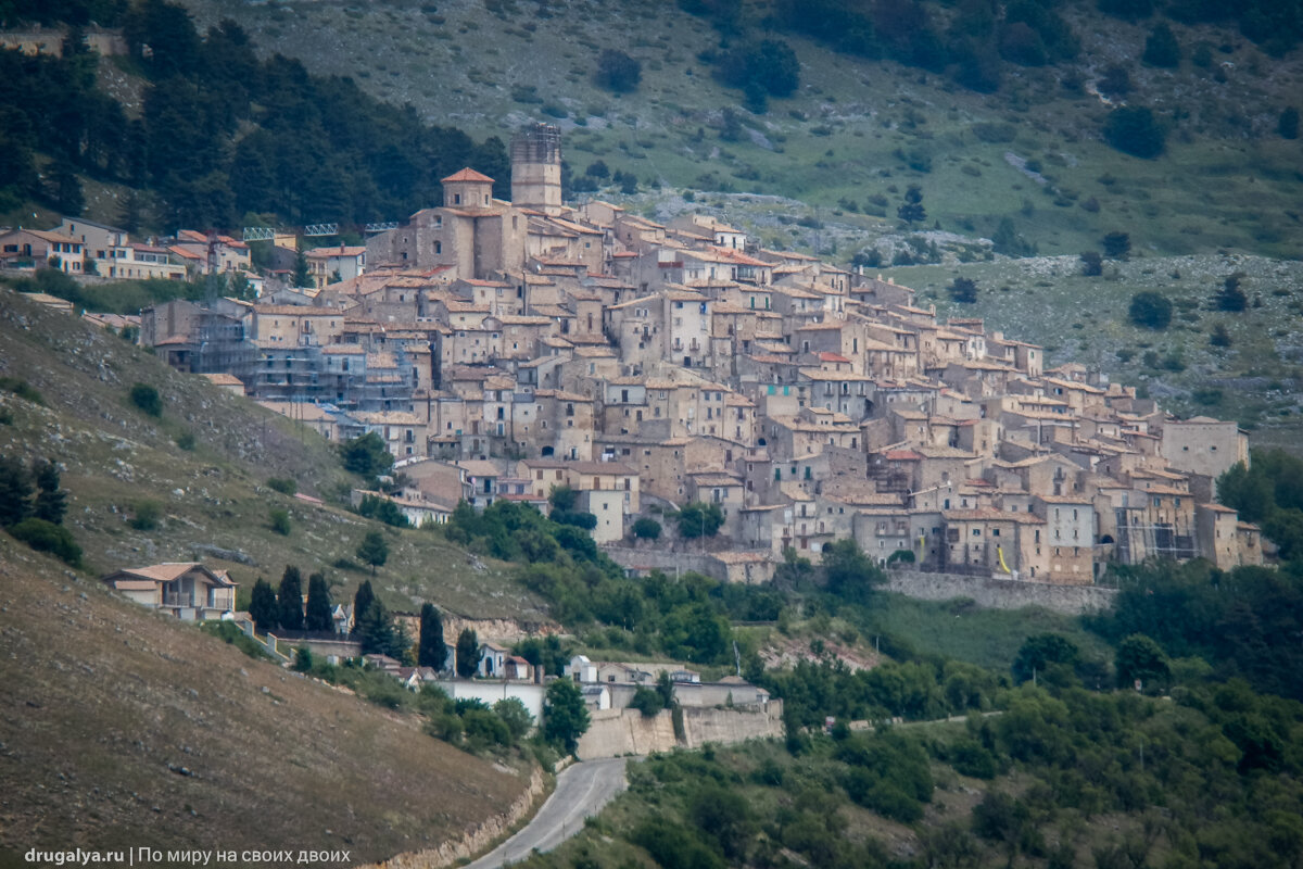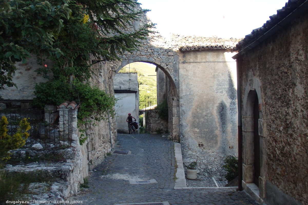 Маршрут красивый, вышел на плато, все зеленое, как Караби, и дорога такая же каменистая. Едется с трудом. Силы как-то закончились. Вечером заехали в средневековый городок Santo Stefano di Sessanio, я погуляла по лабиринтам заброшенных древних улиц. Похоже на Шатили в грузии, только тут много тупиков, городок очень классный, хотелось бы посмотреть на него со стороны, но с нашего пути не было видно город. Встали через 5 км в поле, под крепостью Castelli di Roca Calascio.