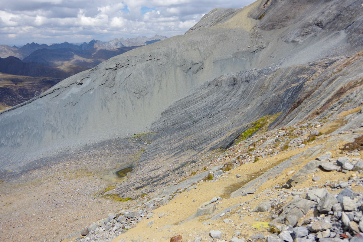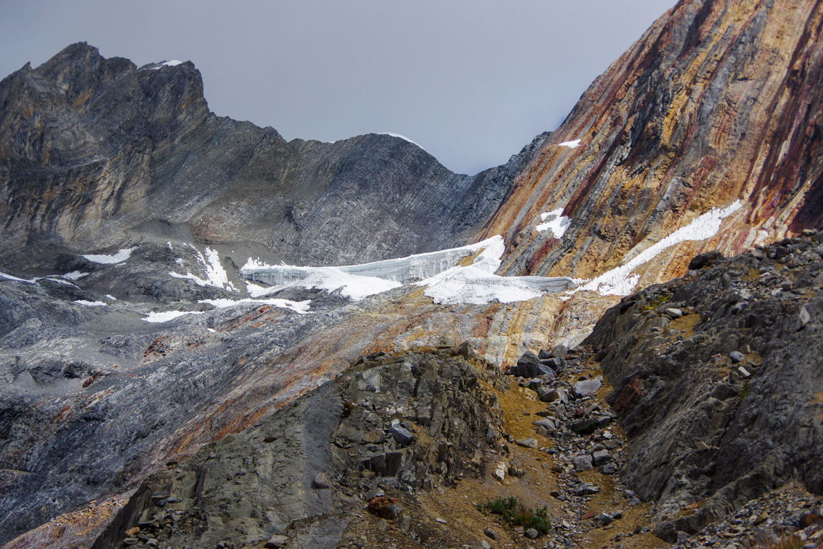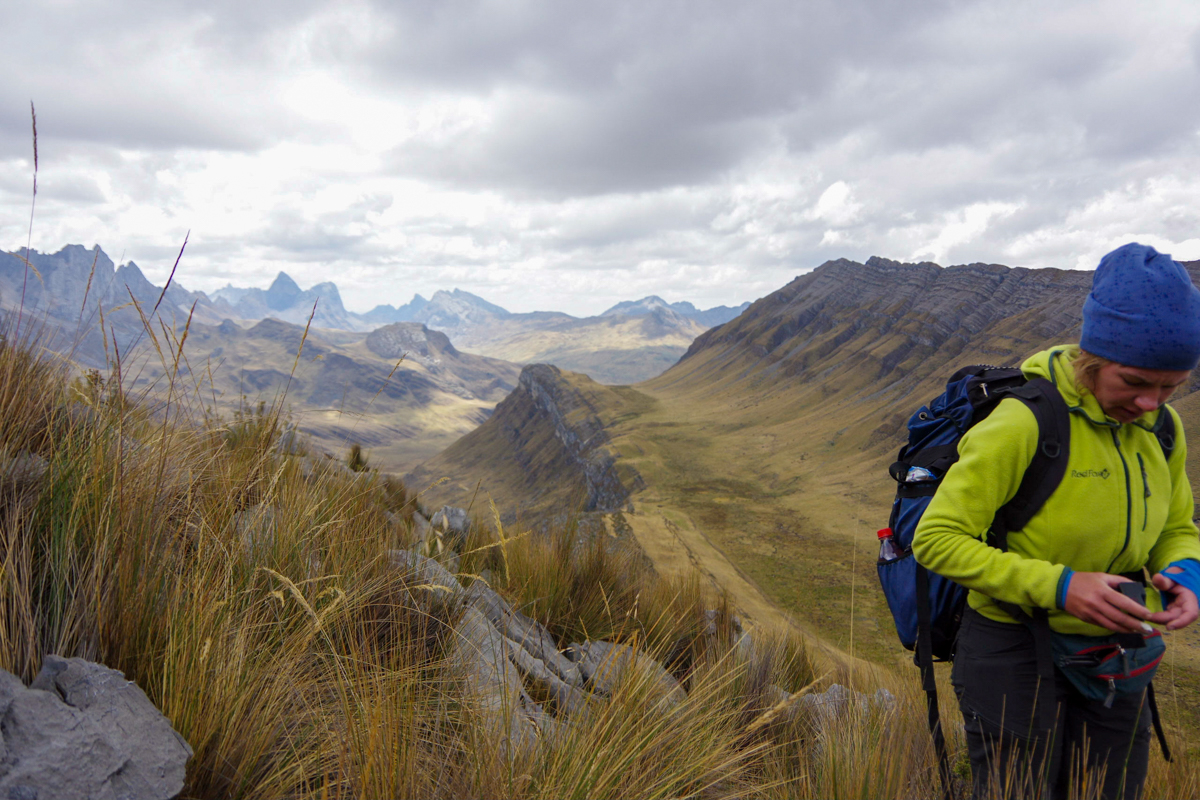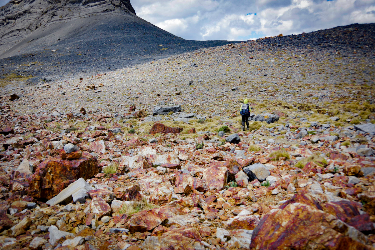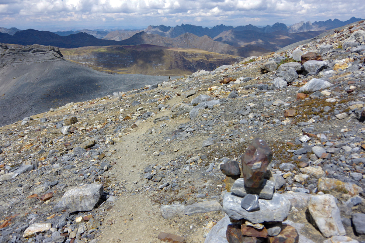 До следующего лагеря — Laguna Carhuacocha есть 2 пути, они одинаковы по расстоянию, но один проще, проходит по вьючной тропе, именно по ней ходят все арейро (погонщики осликов), несущие груз туристов. Ну а по какой тропе идти самим коммерческим группам — это выбор гида. Вторая тропа — настоящая пешеходная, с горным перевалом, почти не читается. У нас было описание в книге и узловые точки жпс, которые мы взяли у единственных соседей по лагерю. Так и пошли. Это прекрасная тропа, и это единственный день за все 7 дней похода, где мы не встретили ни других туристов, ни погонщиков, ни пастухов. Настоящие горы!.