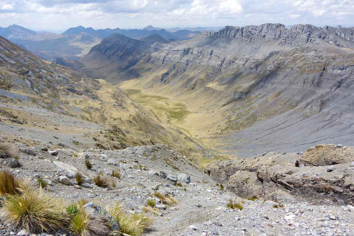 Вид вниз на долину. Казалось бы, там идти намного проще., чем траверсом под скалами.